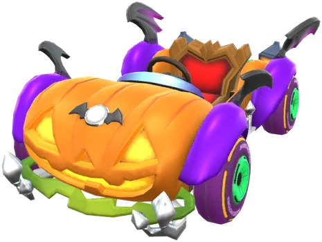 Das Halloween-Vehikel ist ein exzeptionelles Kart aus Mario Kart Tour, das aussieht wie ein Halloween-Kürbis auf Rädern und zwei Fledermausflügel hat. Seine Besitzerinnen sind Peach (Halloween) und Rosalina (Halloween).
