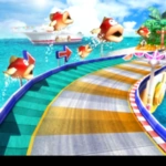 Mario Beach | Dieser Cup findet an einem tropischen Strand statt. In den beiden letzten Rennen ist es nicht mehr Tag, sondern Dämmerung bzw. Nacht. Die Challenge besteht darin, eine Wassermelone ins Ziel zu rollen. Gewinnt man diesen Cup, erhält man ein Unverwundbarkeits-Item. |