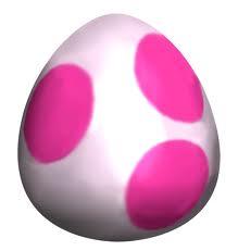Although Mario Kart: Double Dash!! has proven that Birdos can spit pink Yoshi Eggs, most Birdo Eggs are non-spotted. A Birdo will spit Birdo Eggs out of its cannon-like snout, and use the eggs like bullets. The player can Jump on these to get a free ride. These look just like plain white eggs.
