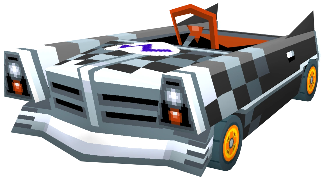 The Brute is gray and black in the back, and checkered on the front, and the emblem is put in the front like real cars without license plates. It resembles American sedans from the 1950s.
