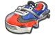 Inside the mall, there are escalators that switch direction every once in a while, though sometimes they will both come to a halt. The Pianta in between the sets of escalators will wave his arms to the right set of escalators you should take, waving at the camera when the escalators are about to change their direction. There is also a garden where there are Dash Panels, small patches of grass and an Item Box-filled fountain where aerial tricks can be done. Near the end, there is a parking lot with more Dash Panels and moving cars to block the way. If you have any Miis registered on your Wii other than your own, they will be driving these cars. If you hit them, you will flip over. Many of your other Miis appear on the various posters throughout the mall, taking on the looks of celebrities and athletes. There is a shortcut just before going down the escalators: turning right to go into a store.