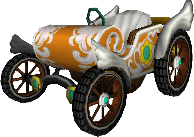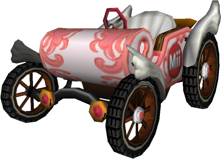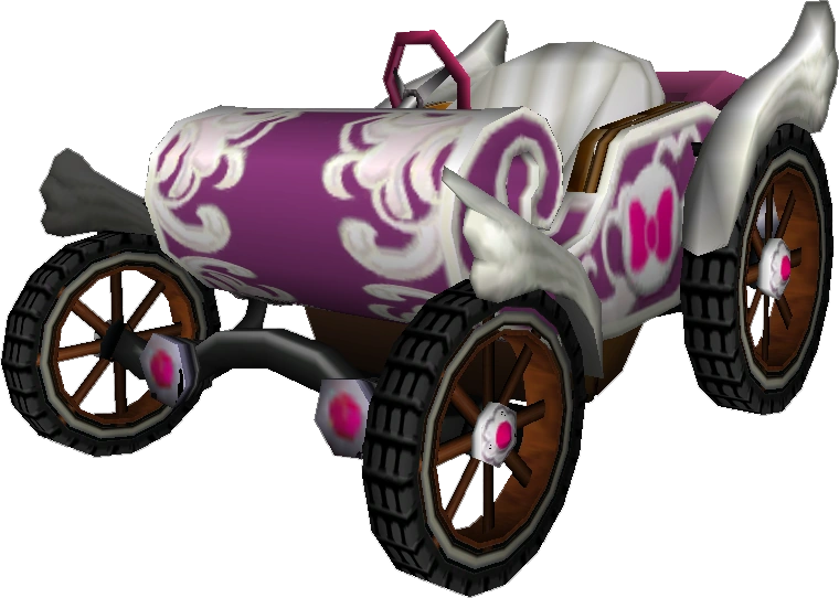 The Daytripper (Royal Racer in PAL regions) is a Medium unlockable Kart in Mario Kart Wii. It is one of the three unlockable karts in the Medium class along with the Super Blooper (Turbo Blooper) and the Sprinter (B Dasher Mk. 2). It resembles a small carriage without a roof, with low speed but impressive Acceleration, Handling, and Mini-Turbo. It is Peach's signature vehicle, and its bike counterpart is the Sugarscoot. Its Small and Large counterparts are the Booster Seat and Offroader, respectively.