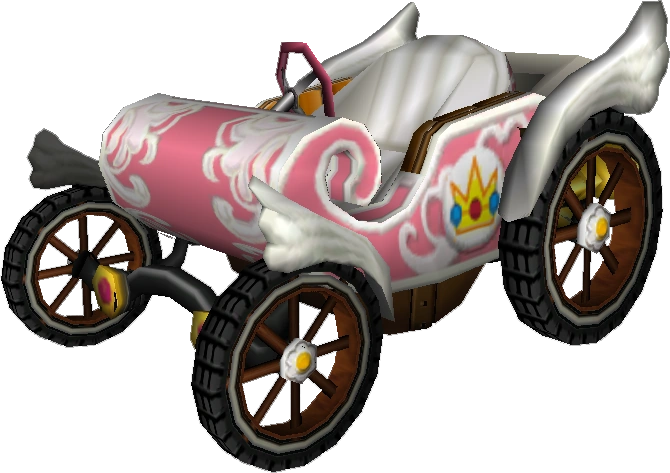 The kart looks similar to the Heart Coach and Bloom Coach in Mario Kart: Double Dash!!, especially when Peach or Daisy drives it.