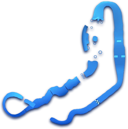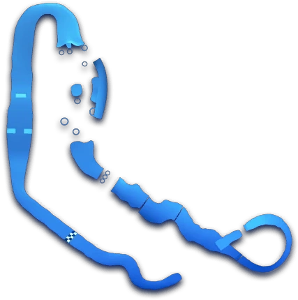 - Where the path splits by the entrance of the undersea cave, the right side takes the player to a small cave section with boost platforms and a ramp leading back to the main section of the track.