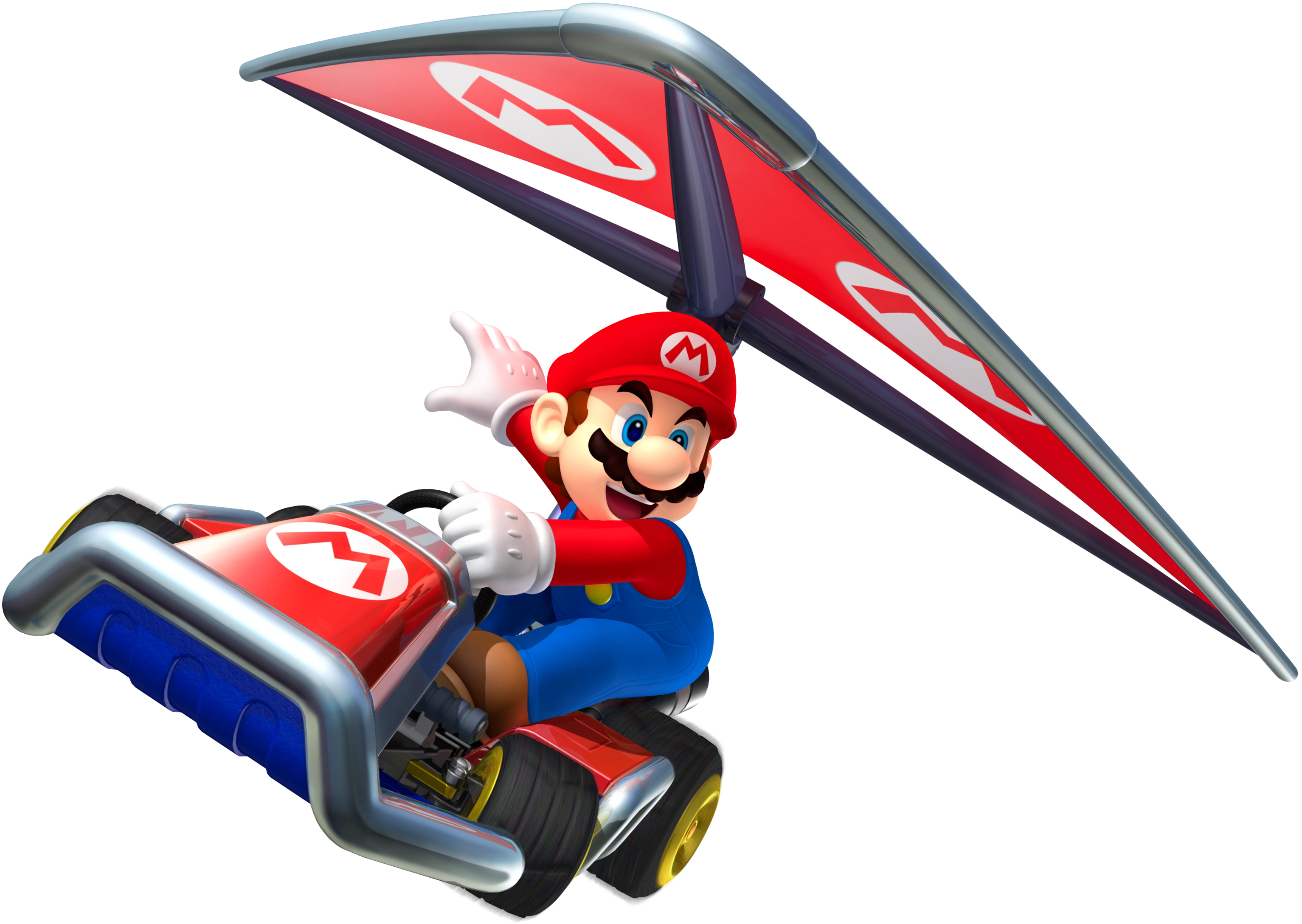 The glider is a new feature introduced in Mario Kart 7, which allows racers to fly after a blue ramp. It reappears in Mario Kart 8 and Mario Kart 8 Deluxe.