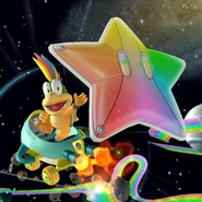This is Lemmy's first appearance in the Mario Kart series. He is a lightweight, along with other Koopalings (Iggy Koopa, Larry Koopa, and Wendy O. Koopa). He is the staff ghost racer for GCN Sherbet Land.