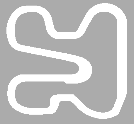 At the beginning of the course are two U-turn like turns with the first being a right turn, and the second being left. The course then makes a hairpin turn right then to a straightaway, followed by a left U-turn. From here the road continues straight until it reaches a right hairpin followed by a winding path, then ending with a zipper going to the Finish Line.
