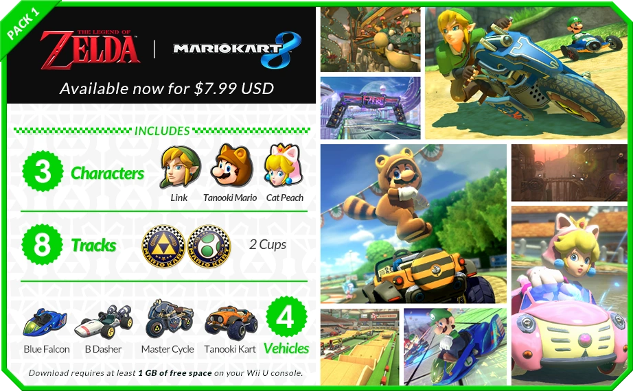 - Legend of Zelda × Mario Kart 8 (Pack 1): US$7.99, CA$9.99 or 60 My Nintendo gold points