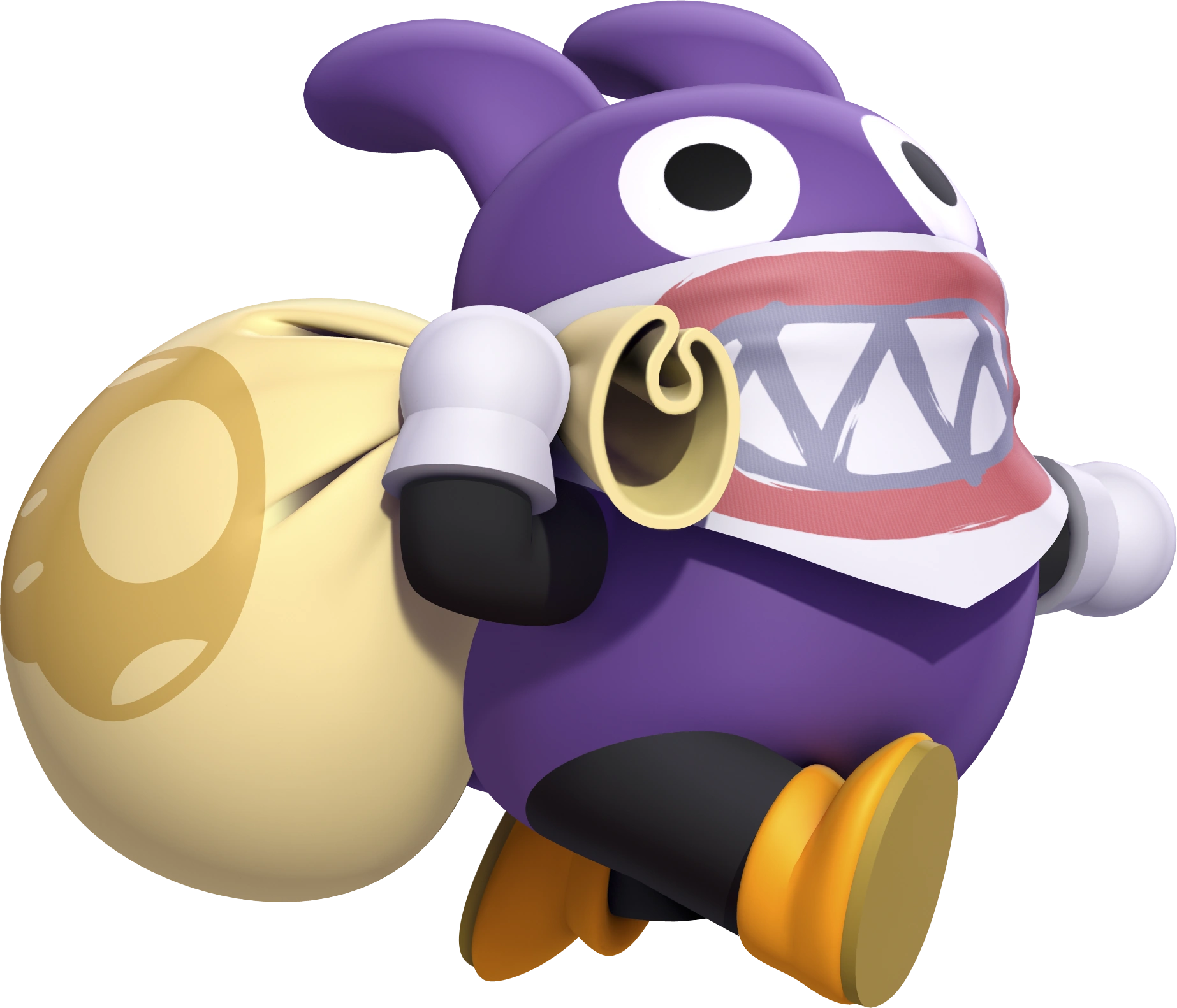 Nabbit is a High-End character and has been added with an update. His Tour debut is in Exploration Tour as the last Bonus challenge VS Mega Boss. Exploration Tour is started at July 14, 2020, and he is later being Playable Character along with Wario (Cowboy) in the Wild West Tour. This Tour Is Started at at July 28, 2020. Nabbit Special Item is Lucky 7 and his Character traits is "Gloves". He is Only Tour Exclusive.