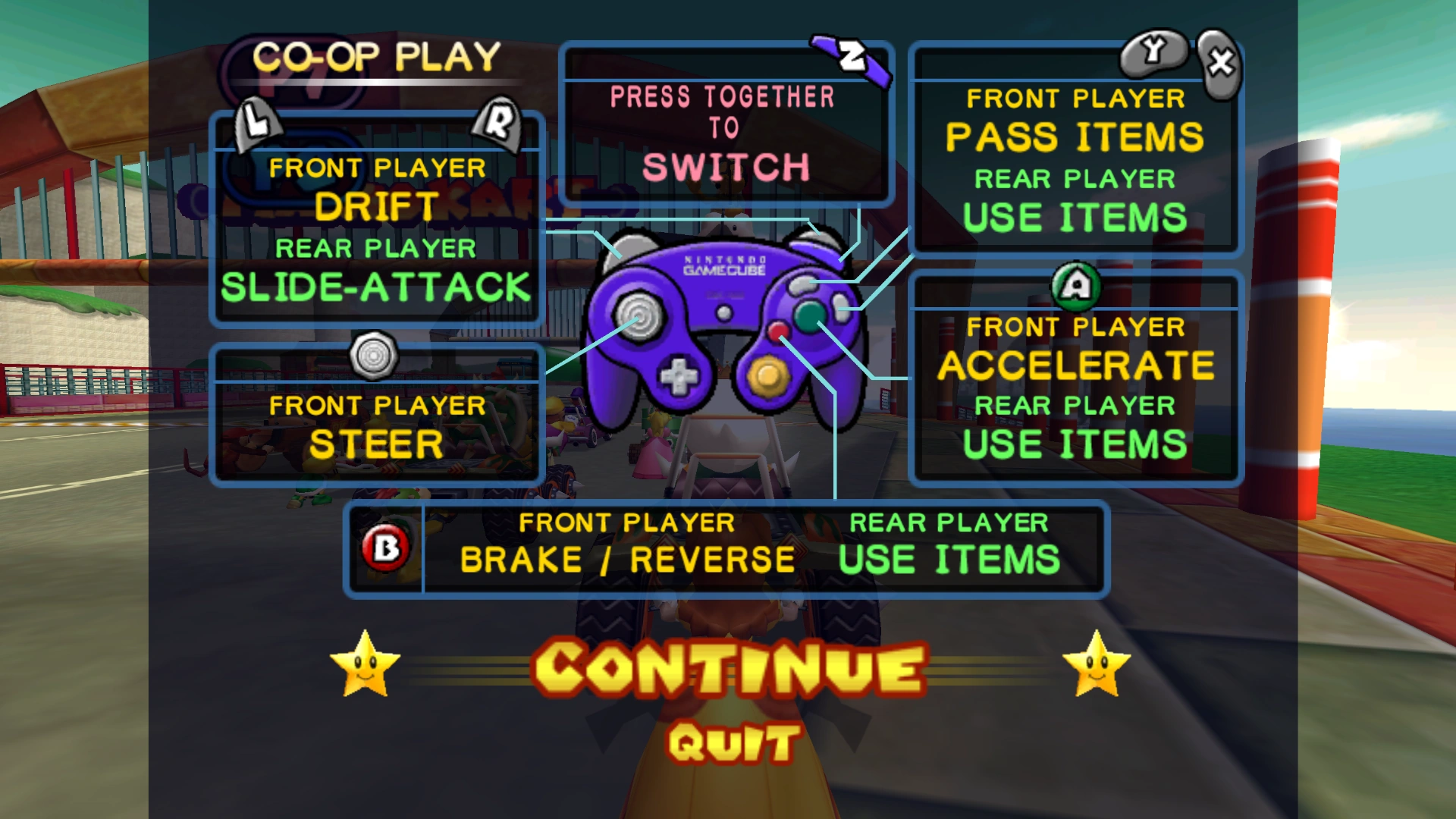 The in-game controller instructions for Mario Kart: Double Dash!!