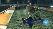 Piranha Plant Slide reappears as the second course of the Lightning Cup. The only major change is that the underwater pipeway has been redesigned, and now encompasses an anti-gravity section, as well as the starting area being higher up than the gliding section, as opposed to lower like in the original version. Otherwise, this course has only been revamped graphically, with better graphics and shading.