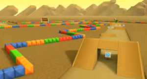 This track reuses the same visuals for the Choco Island courses, which are also present in this game. At the beginning, you are immediately sent into a right turn toward a small ramp, though just like RMX Choco Island 1, all the ramps in this track are in similar style to the ones seen in the Excitebike Arena course found in Mario Kart 8 and Mario Kart 8 Deluxe. Moving forward, you then take a left U-turn down into a long straightaway, with an optional ramp found along the way. You then take a slight right towards a set of Item Boxes, with half of them positioned onto a small optional ramp, all before going up a much larger ramp. Afterwards, you take a sharp left toward another large ramp, though interestingly, there is a hole in the middle of it that houses an Item Box. After going either through or up the large ramp, you are then sent down a long straight with multiple optional ramps littering the path. After all that, you then go up yet another large ramp, though no holes are present; instead opting for a Piranha Plant, that guards the top of the ramp. After you make it through, you then take a left U-turn into the final straight, where off to the right sits an optional Dash Panel that could be taken to finish the lap or the race.