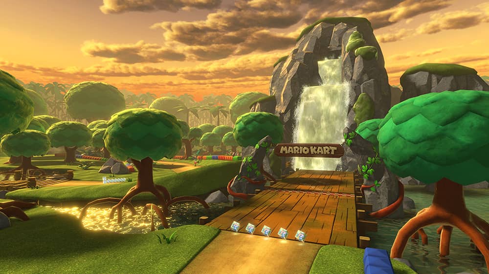 Riverside Park's starting banner as seen in Mario Kart Tour.