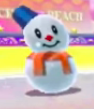 Snowmen are hazards in various snow courses in the Mario Kart games. Snowmen are seen in various snow courses and knock over racers who run into them. Running into a Snowman (or hitting it with an Item) will also cause it to dissipate but it will rerise from the ground after a few seconds. Looks like Dry Bones isn't the only one who can resurrect himself.