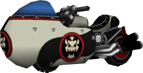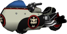 Hence its PAL region name, it actually resembles a torpedo from sunken ships or a blimp converted with a bike and two pairs of dual-exhaust ports on each side. It also resembles a Moto Guzzi V8. Its kart counterpart is the Jetsetter. Its medium counterpart is the Sneakster, while its small counterpart is the Bullet Bike, as all three are the fastest bikes in their respective size classes.