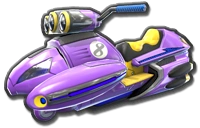 The Duke is a large purple scooter, and is similar to the Shooting Star bike in Mario Kart Wii. It glows in sync with the music, similar to the Badwagon. The bike is based for Waluigi.
