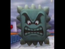 A Thwomp is an enemy in most Super Mario games, usually in Bowser Castle levels, although they do not appear in that course in Mario Kart 8 or the Switch version.