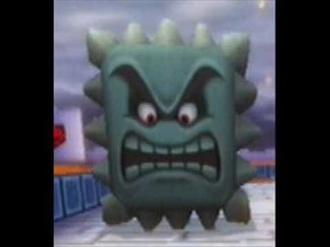 Thwomps make their debut appearance in Super Mario Bros. 3. Mario can encounter them on his way through fortresses, but should be careful where he goes. If he ever got near their territory, these stone monsters would come crashing down to try to squash him, taking away one of his lives if their attack scores a hit.