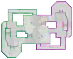 Relevant to stages like Pipe Plaza and/or Thwomp Desert, Urchin Underpass is kind of confusing. In the center is a large, rectangular area with a few ramps where racers can meet and toss all the Shells they want. But branching off from this lobby are 6 different paths, 3 green and 3 purple, dividing it into 2 "factions" (not including center). Each side is the same but flipped upside down, and of course different colors. The three paths meet up to a sort of camp which is two story and has all the Boost Pads and ramps one could want.