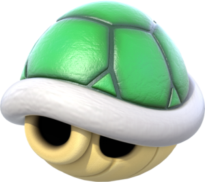 A lot of shells, huh? I used a different picture, but there's not a good picture I can use for this. The Gigantic Koopa Shell works the same as the Bowser Shell, and it replaces that item. Once it bounces off the wall ten times, it breaks.